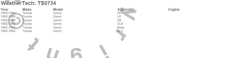 Below is an abbreviated list of applications for the WeatherTech SunShade.Camry, Toyota, 1996, 1995, 1994, 1993, 1992