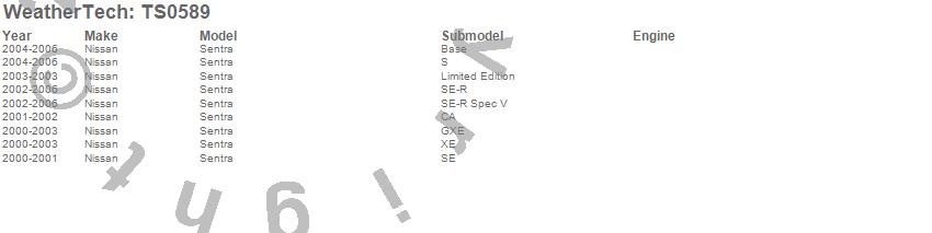 Below is an abbreviated list of applications for the WeatherTech SunShade.Sentra, Nissan, 2006, 2005, 2004, 2003, 2002, 2001, 2000