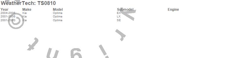 Below is an abbreviated list of applications for the WeatherTech SunShade.Optima, Kia, 2006, 2005, 2004, 2003, 2002, 2001