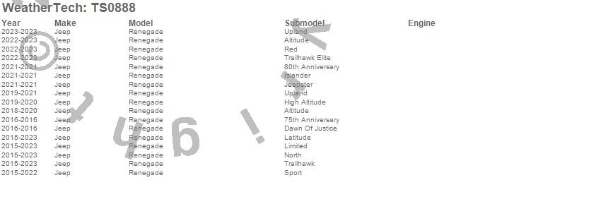 Below is an abbreviated list of applications for the WeatherTech SunShade.Renegade, Jeep, 2023, 2022, 2021, 2020, 2019, 2018, 2017, 2016, 2015