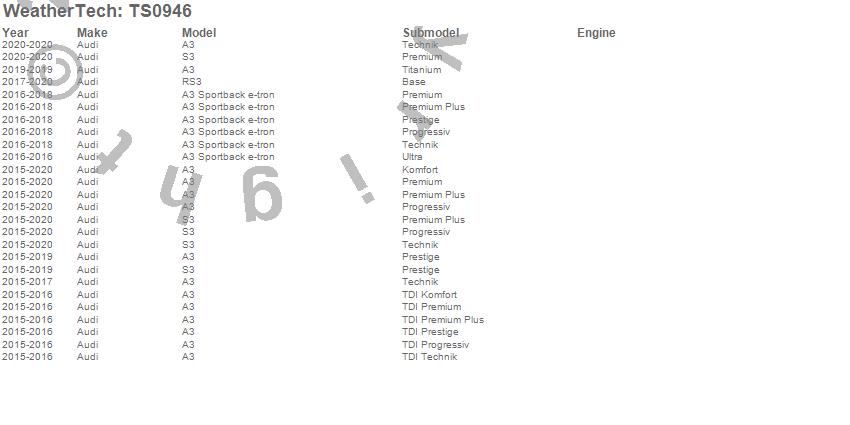 Below is an abbreviated list of applications for the WeatherTech SunShade.A3, A3 Sportback e-tron, RS3, S3, Audi, 2020, 2019, 2018, 2017, 2016, 2015
