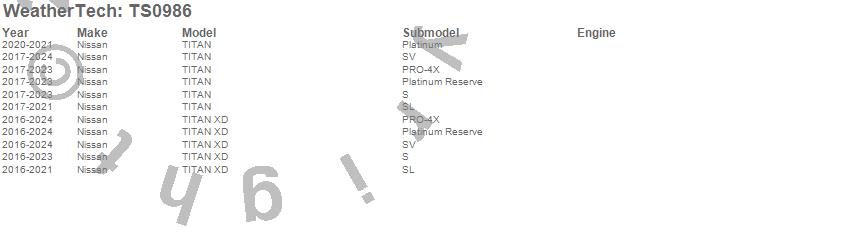 Below is an abbreviated list of applications for the WeatherTech SunShade.TITAN, TITAN XD, Nissan, 2024, 2023, 2022, 2021, 2020, 2019, 2018, 2017, 2016