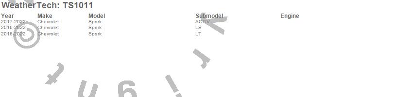 Below is an abbreviated list of applications for the WeatherTech SunShade.Spark, Chevrolet, 2022, 2021, 2020, 2019, 2018, 2017, 2016