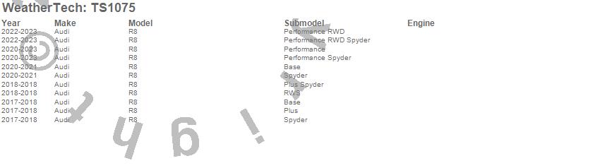 Below is an abbreviated list of applications for the WeatherTech SunShade.R8, Audi, 2023, 2022, 2021, 2020, 2018, 2017