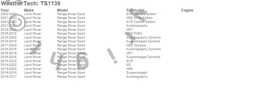 Below is an abbreviated list of applications for the WeatherTech SunShade.Range Rover Sport, Land Rover, 2022, 2021, 2020, 2019, 2018, 2017, 2016, 2015, 2014