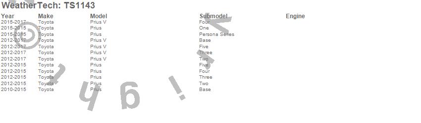 Below is an abbreviated list of applications for the WeatherTech SunShade.Prius, Prius V, Toyota, 2017, 2016, 2015, 2014, 2013, 2012, 2011, 2010