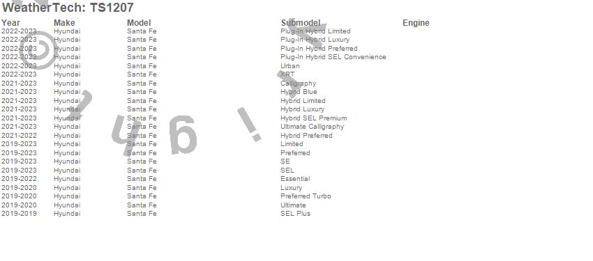 Below is an abbreviated list of applications for the WeatherTech SunShade.Santa Fe, Hyundai, 2023, 2022, 2021, 2020, 2019