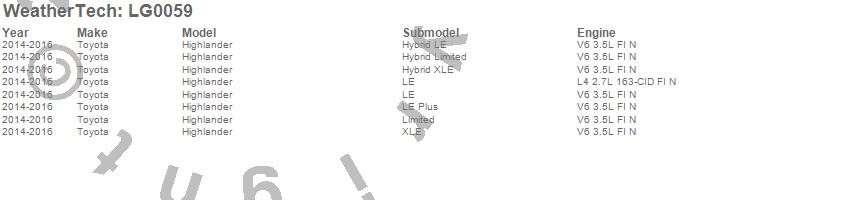Below is an abbreviated list of applications for the LampGard.Highlander, Toyota, 2016, 2015, 2014