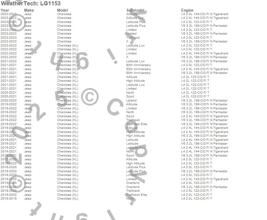 Below is an abbreviated list of applications for the LampGard.Cherokee, Cherokee (KL), Jeep, 2023, 2022, 2021, 2020, 2019