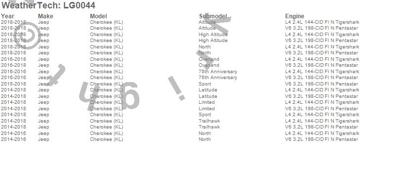 Below is an abbreviated list of applications for the LampGard.Cherokee (KL), Jeep, 2018, 2017, 2016, 2015, 2014