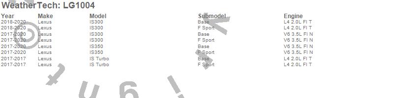 Below is an abbreviated list of applications for the LampGard.IS Turbo, IS300, IS350, Lexus, 2020, 2019, 2018, 2017