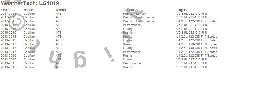 Below is an abbreviated list of applications for the LampGard.ATS, Cadillac, 2019, 2018, 2017, 2016, 2015, 2014, 2013