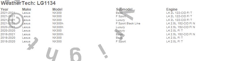 Below is an abbreviated list of applications for the LampGard.NX300, NX300h, Lexus, 2021, 2020, 2019, 2018
