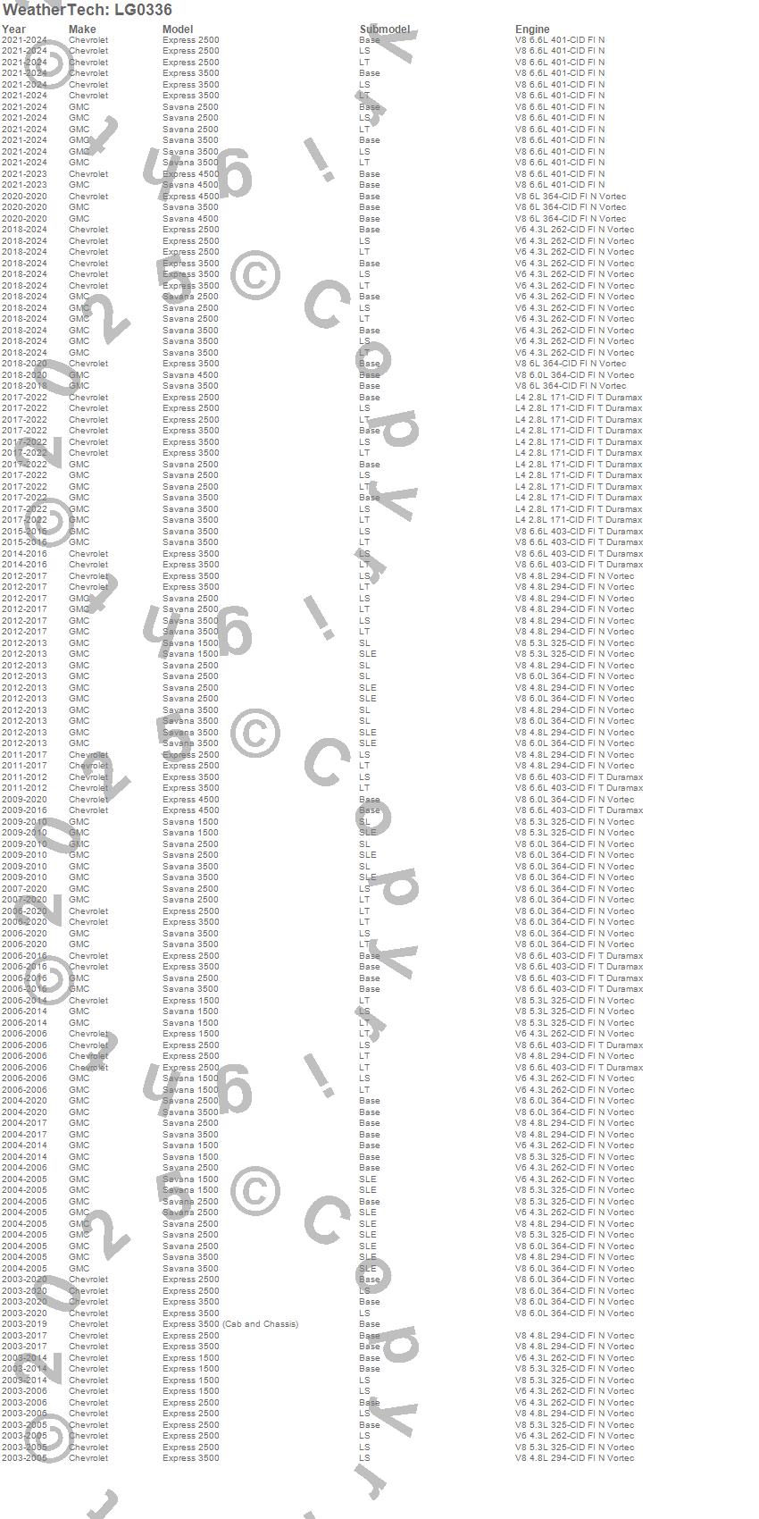 Below is an abbreviated list of applications for the LampGard.Express 1500, Express 2500, Express 3500, Express 3500 (Cab and Chassis), Express 4500, Savana 1500, Savana 2500, Savana 3500, Savana 4500, Chevrolet, GMC, 2025, 2024, 2023, 2022, 2021, 2020, 2019, 2018, 2017