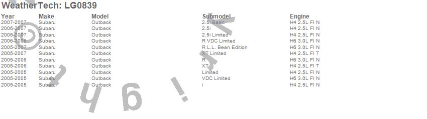 Below is an abbreviated list of applications for the LampGard.Outback, Subaru, 2007, 2006, 2005