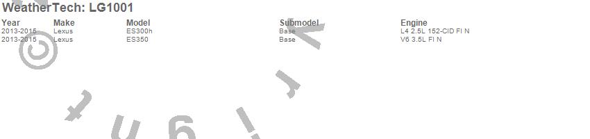 Below is an abbreviated list of applications for the LampGard.ES300h, ES350, Lexus, 2015, 2014, 2013