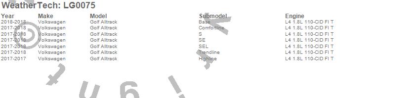 Below is an abbreviated list of applications for the LampGard.Golf Alltrack, Volkswagen, 2018, 2017