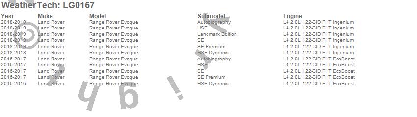 Below is an abbreviated list of applications for the LampGard.Range Rover Evoque, Land Rover, 2019, 2018, 2017, 2016