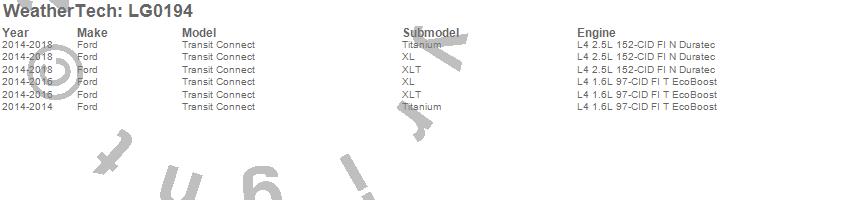 Below is an abbreviated list of applications for the LampGard.Transit Connect, Ford, 2018, 2017, 2016, 2015, 2014