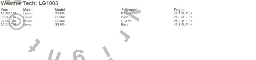 Below is an abbreviated list of applications for the LampGard.GS350, GS450h, Lexus, 2015, 2014, 2013