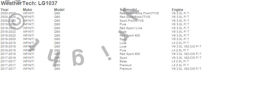 Below is an abbreviated list of applications for the LampGard.Q60, INFINITI, 2022, 2021, 2020, 2019, 2018, 2017