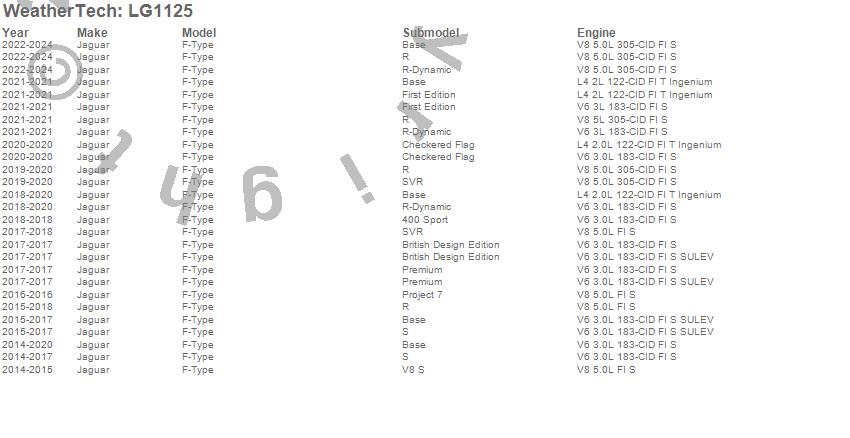 Below is an abbreviated list of applications for the LampGard.F-Type, Jaguar, 2024, 2023, 2022, 2021, 2020, 2019, 2018, 2017, 2016, 2015, 2014