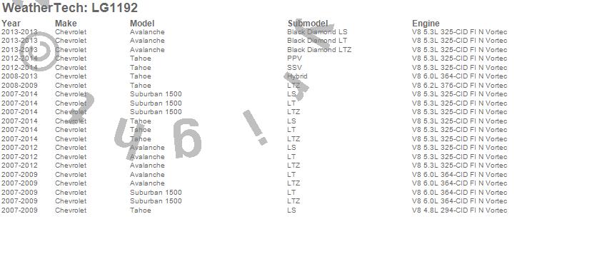 Below is an abbreviated list of applications for the LampGard.Avalanche, Suburban 1500, Tahoe, Chevrolet, 2014, 2013, 2012, 2011, 2010, 2009, 2008, 2007