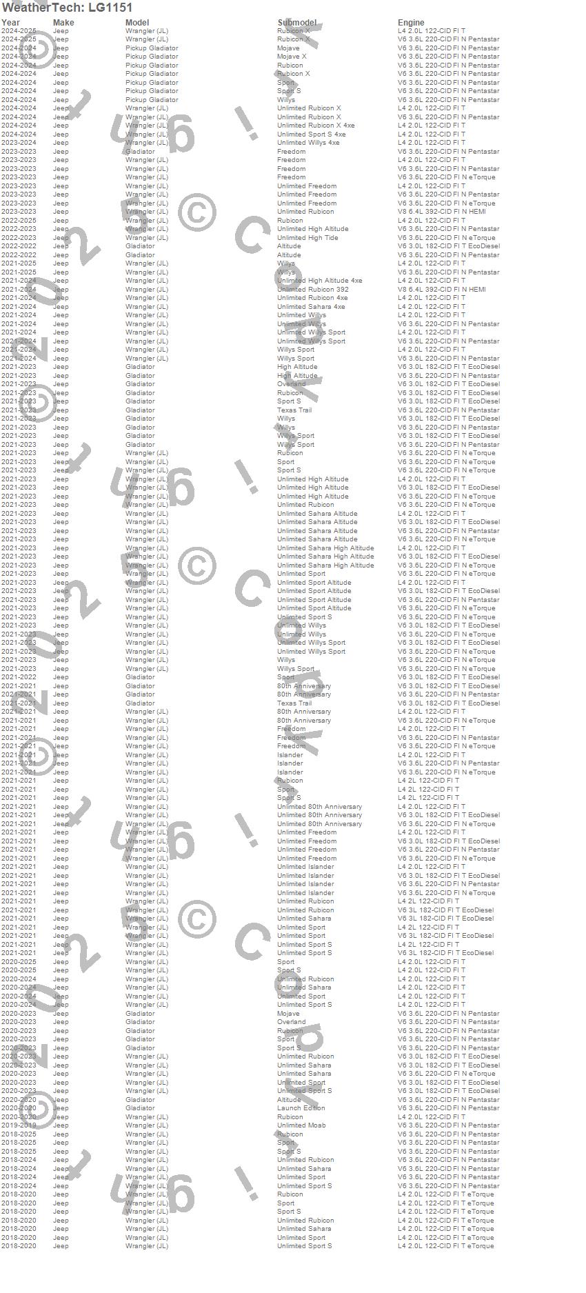 Below is an abbreviated list of applications for the LampGard.Gladiator, Pickup Gladiator, Wrangler, Wrangler (JL), Jeep, 2026, 2025, 2024, 2023, 2022, 2021, 2020, 2019, 2018