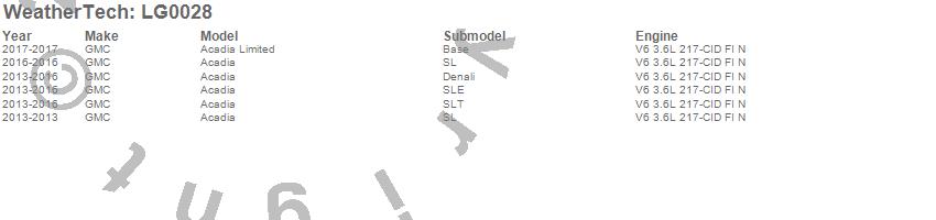 Below is an abbreviated list of applications for the LampGard.Acadia, Acadia Limited, GMC, 2017, 2016, 2015, 2014, 2013