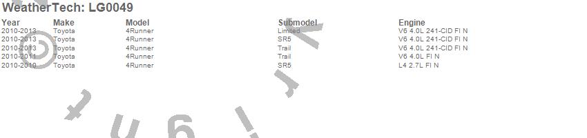 Below is an abbreviated list of applications for the LampGard.4Runner, Toyota, 2013, 2012, 2011, 2010