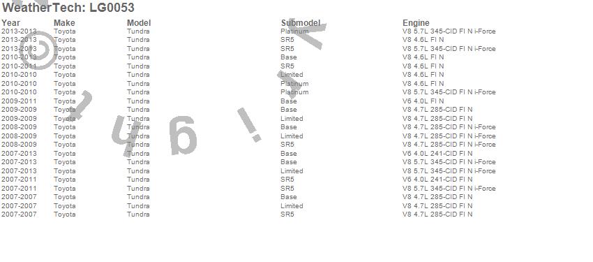 Below is an abbreviated list of applications for the LampGard.Tundra, Toyota, 2013, 2012, 2011, 2010, 2009, 2008, 2007