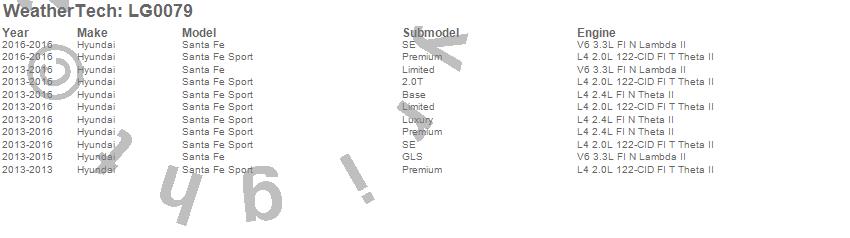 Below is an abbreviated list of applications for the LampGard.Santa Fe, Santa Fe Sport, Hyundai, 2016, 2015, 2014, 2013