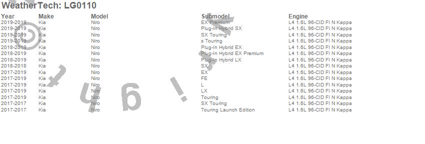 Below is an abbreviated list of applications for the LampGard.Niro, Kia, 2019, 2018, 2017