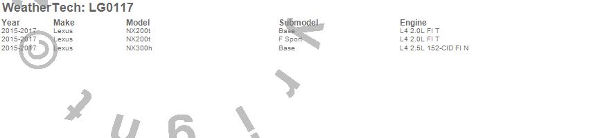 Below is an abbreviated list of applications for the LampGard.NX200t, NX300h, Lexus, 2017, 2016, 2015