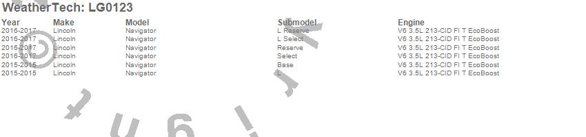 Below is an abbreviated list of applications for the LampGard.Navigator, Lincoln, 2017, 2016, 2015