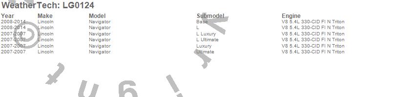 Below is an abbreviated list of applications for the LampGard.Navigator, Lincoln, 2014, 2013, 2012, 2011, 2010, 2009, 2008, 2007