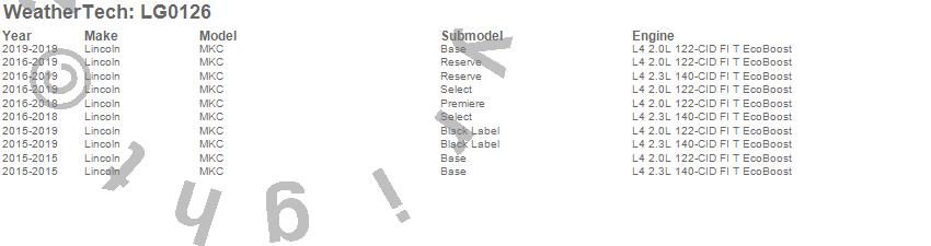 Below is an abbreviated list of applications for the LampGard.MKC, Lincoln, 2019, 2018, 2017, 2016, 2015