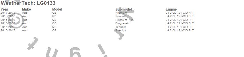 Below is an abbreviated list of applications for the LampGard.Q3, Audi, 2018, 2017, 2016, 2015