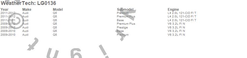 Below is an abbreviated list of applications for the LampGard.Q5, Audi, 2012, 2011, 2010, 2009