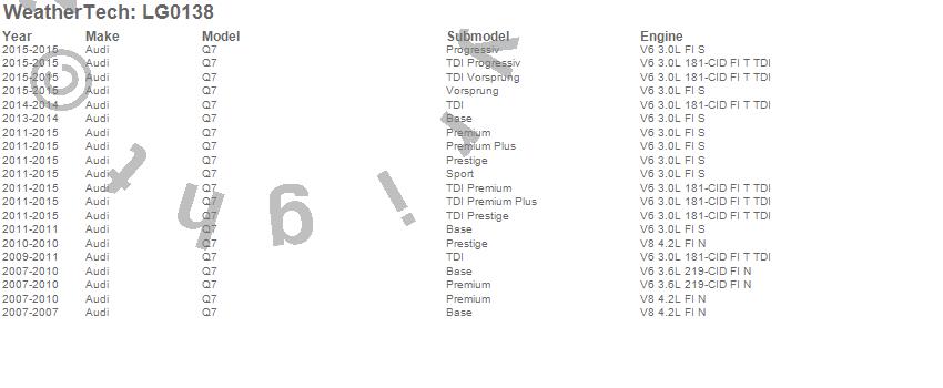 Below is an abbreviated list of applications for the LampGard.Q7, Audi, 2015, 2014, 2013, 2012, 2011, 2010, 2009, 2008, 2007