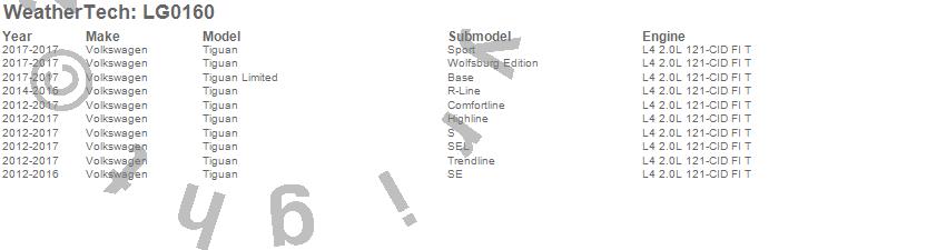 Below is an abbreviated list of applications for the LampGard.Tiguan, Tiguan Limited, Volkswagen, 2017, 2016, 2015, 2014, 2013, 2012