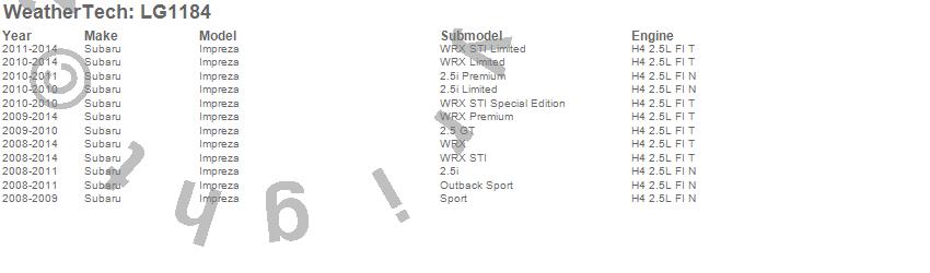 Below is an abbreviated list of applications for the LampGard.Impreza, Subaru, 2014, 2013, 2012, 2011, 2010, 2009, 2008