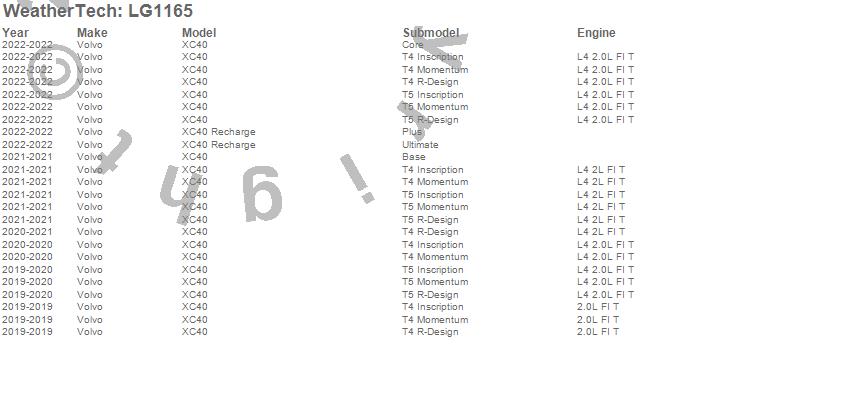 Below is an abbreviated list of applications for the LampGard.XC40, XC40 Recharge, Volvo, 2022, 2021, 2020, 2019