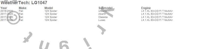 Below is an abbreviated list of applications for the LampGard.124 Spider, Fiat, 2020, 2019, 2018, 2017