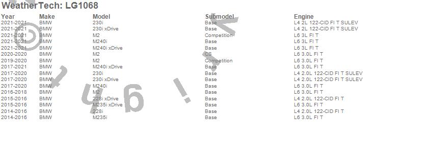 Below is an abbreviated list of applications for the LampGard.228i, 228i xDrive, 230i, 230i xDrive, M2, M235i, M235i xDrive, M240i, M240i xDrive, BMW, 2021, 2020, 2019, 2018, 2017, 2016, 2015, 2014