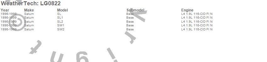 Below is an abbreviated list of applications for the LampGard.SL, SL1, SL2, SW1, SW2, Saturn, 1999, 1998, 1997, 1996