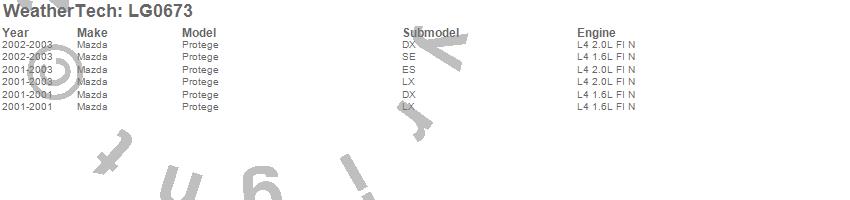 Below is an abbreviated list of applications for the LampGard.Protege, Mazda, 2003, 2002, 2001