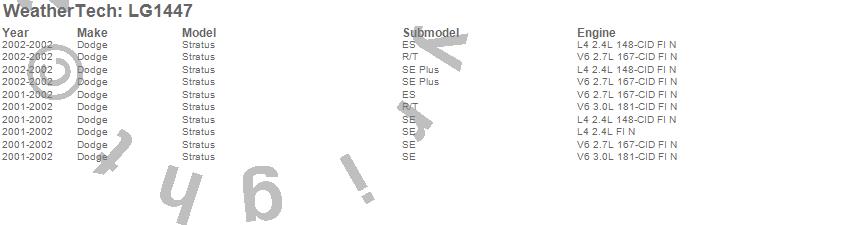 Below is an abbreviated list of applications for the LampGard.Stratus, Dodge, 2002, 2001
