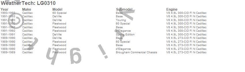 Below is an abbreviated list of applications for the LampGard.60 Special, DeVille, Fleetwood, Cadillac, 1993, 1992, 1991, 1990, 1989