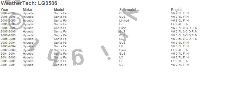 Below is an abbreviated list of applications for the LampGard.Santa Fe, Hyundai, 2006, 2005, 2004, 2003, 2002, 2001